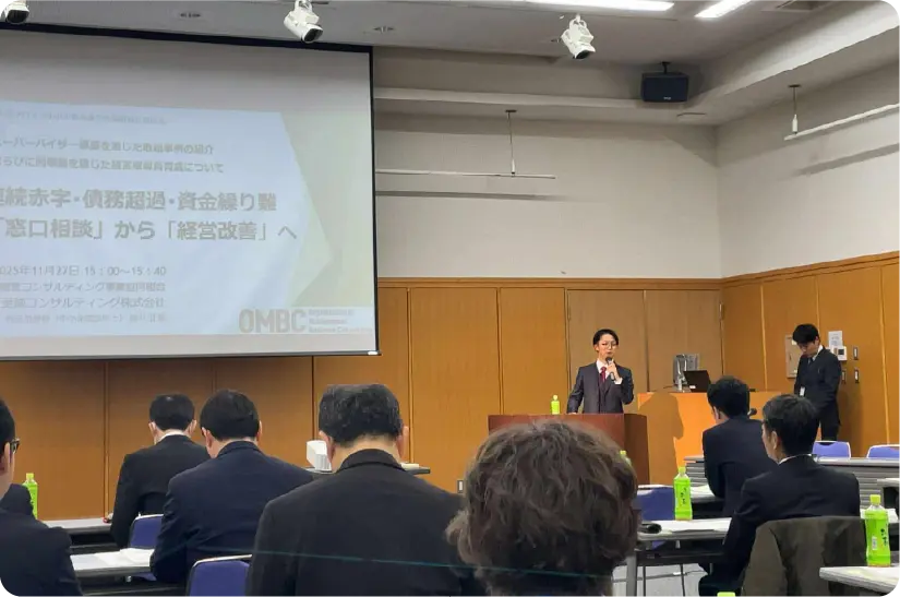 また、商工会議所・金融機関・自治体等での講演・セミナーにも多数登壇し、延べ1,000社以上の経営相談に対応。豊富な実務経験を活かした具体的でわかりやすい講義には定評がある。